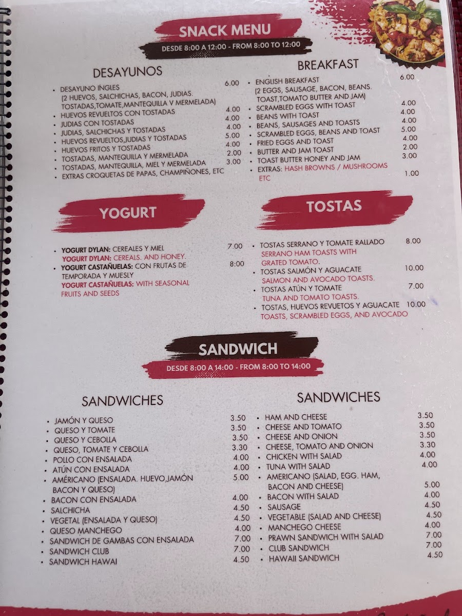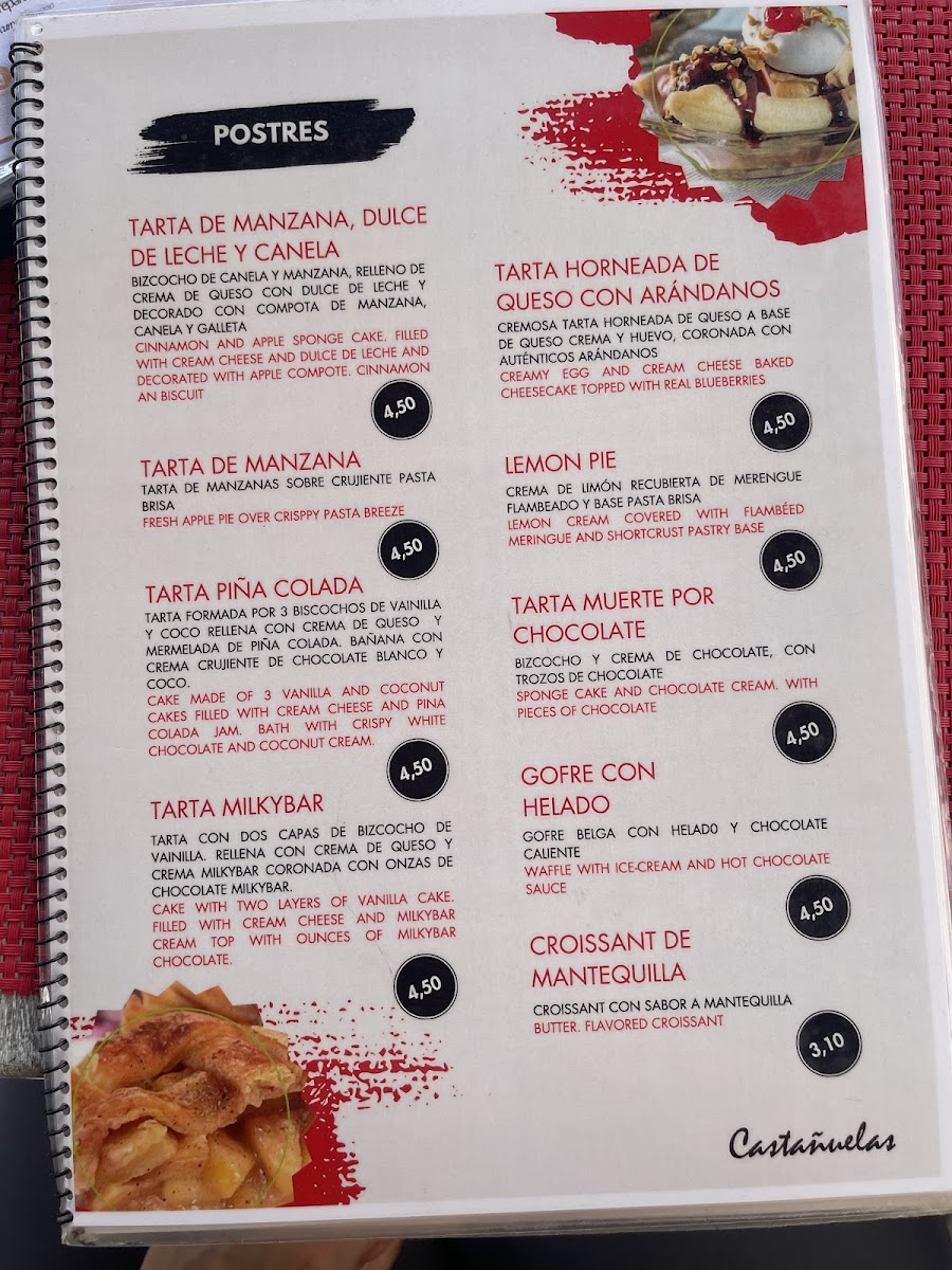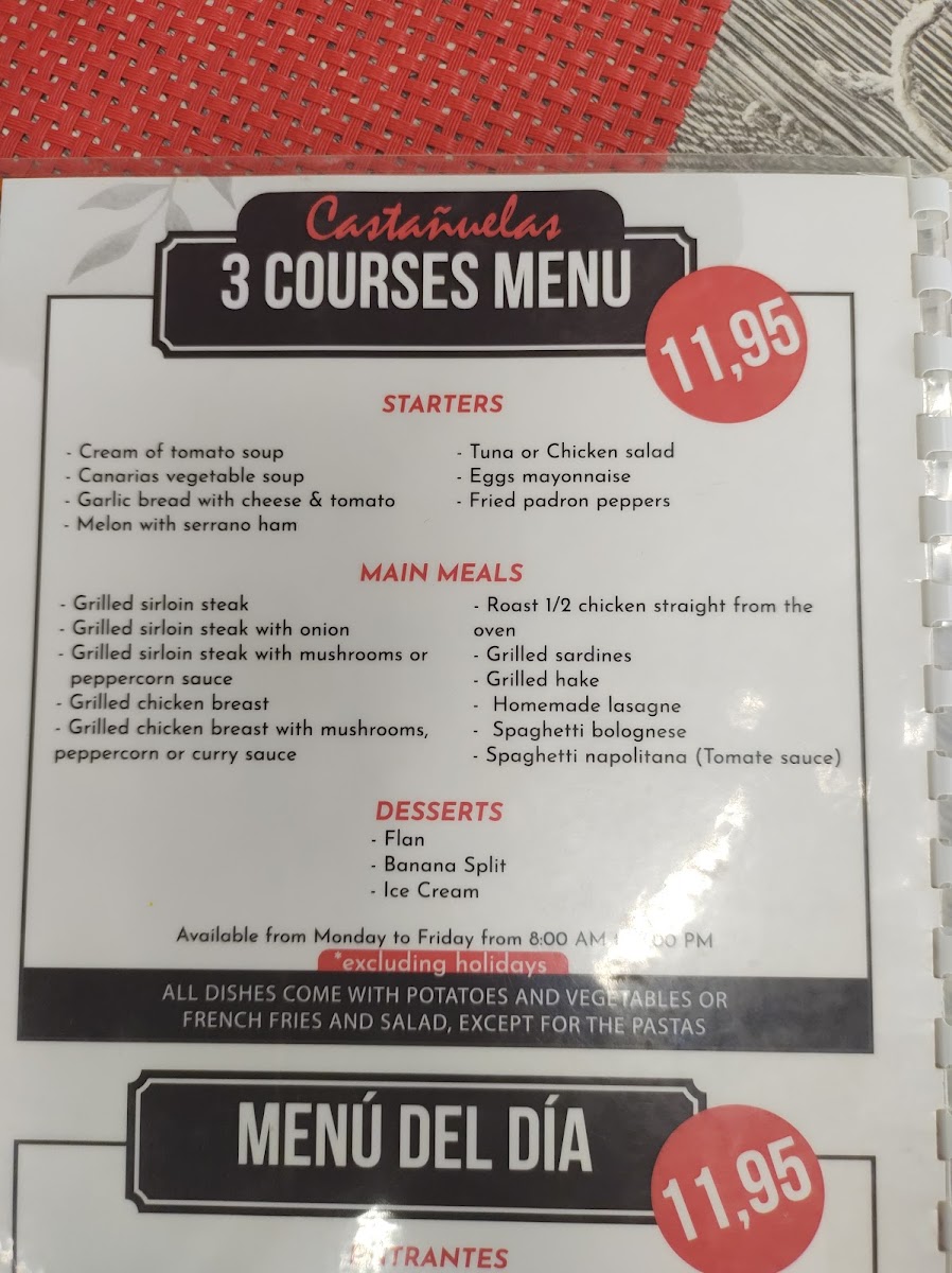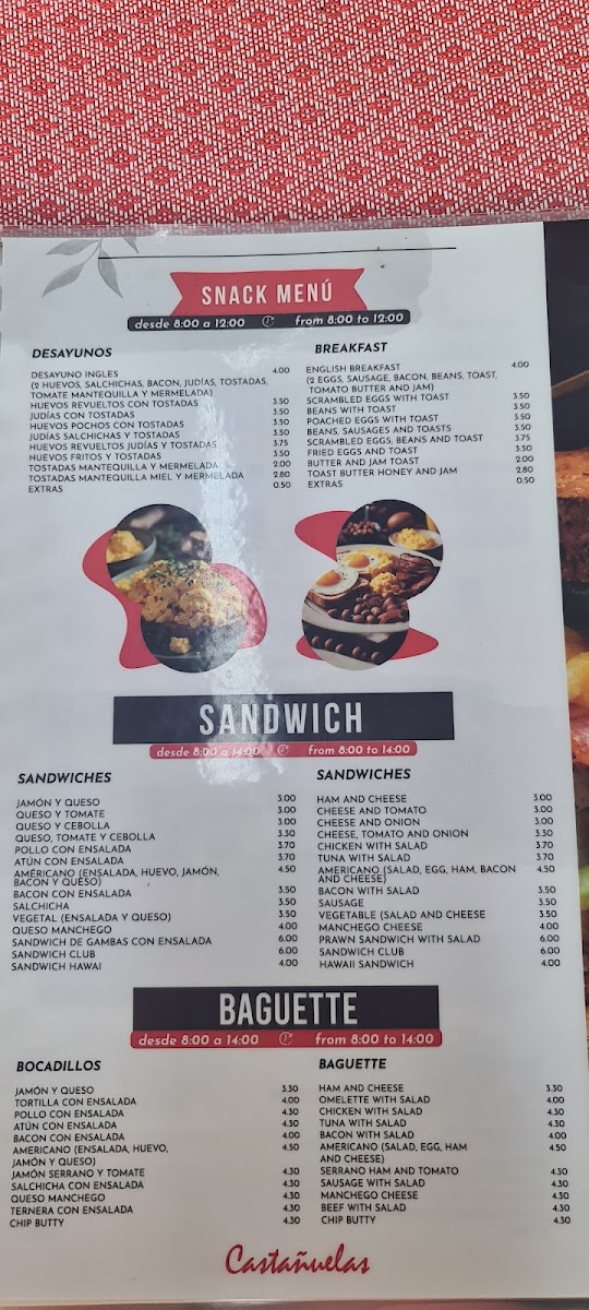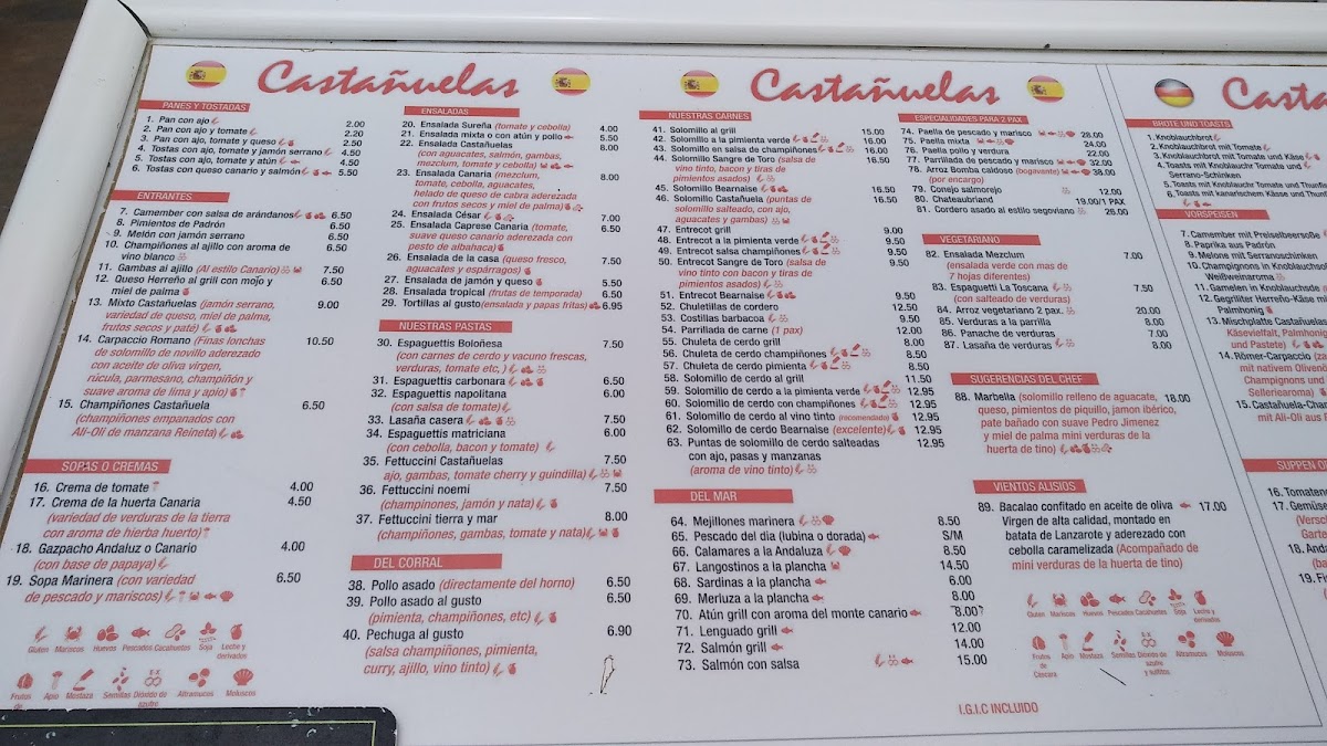 Las Castañuelas offers a relaxed and approachable menu that reflects its prime location by the sea in Los Cristianos. The selection strikes a balance between hearty local favorites and familiar international dishes, making it a versatile spot for any time of day.